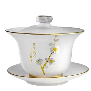 Tigela de vidro resistente ao calor com tampa de borda dourada, tigela para fazer chá, três talentos fosco, xícara de kung fu fair, e tigela para oferecer chá
