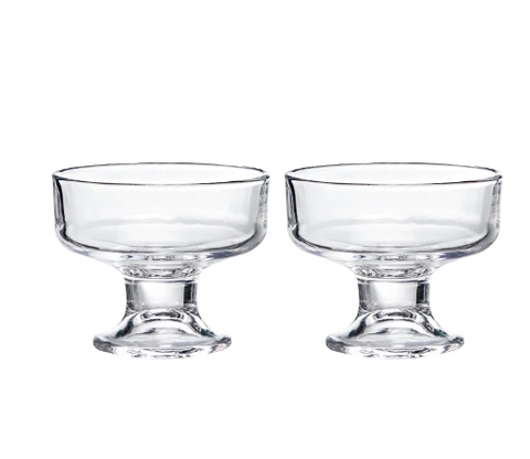 Copos de sorvete e sorvete, copos de água de cristal de pernas altas, copos de coquetel champanhe, copos de refrigerantes e sobremesas