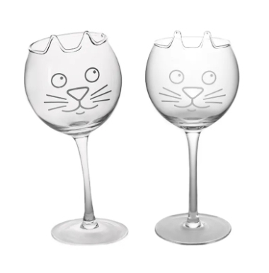 Transparente alto pernas vinho vidro set, 2 aniversário original ou presentes de Natal para as mulheres, presente do gato para entusiastas do gato