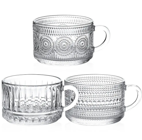 Винтажные стеклянные кофейные кружки прозрачные чашки для завтрака с ручкой штабелируемые стеклянные чашки с тиснением