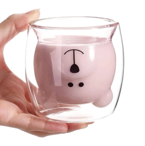 Criativo мультяшное животное dupla camada de vidro isolado copo de beber, bonito urso copo de beber
